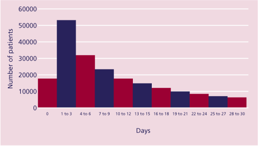 It can be seen from Figure 25 that more patients died during the first three days following admission than on any subsequent three-day period. Whilst that has been seen in previous NCEPOD reports following surgery, it is interesting to note that these data were similar regardless of whether a procedure was performed or not. It is likely therefore that this simply reflects the fact that many patients admitted to hospital, especially for no procedure,