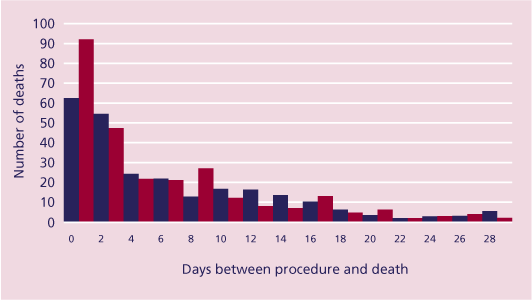 Figure 18. Days between procedure and death in cases with upper GI haemorrhage