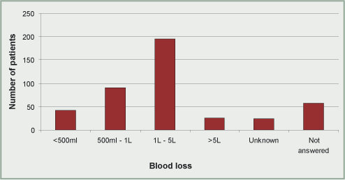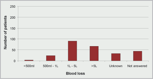 The calculation of blood loss is recognised to be difficult for emergency operations (Figure 7). As expected, blood loss is less for elective operations (Figure 6) than for emergency ones, but 7% of patients (26/353) lost over five litres. The low blood loss reported for emergency aneurysm repair may be for cases when the aneurysm was unruptured. 91 patients were reported to have lost over five litres of blood at either elective or emergency open operations. 64% (58/91) of these patients received platelet transfusions, 77% (70/91) received fresh frozen plasma and 41% (40/98) received their own blood retrieved by a cell salvage system. 26% (25/98) received all three interventions. Are these figures acceptable? The use of cell saver equipment is discussed in Organisation of vascular services. The NCEPOD advisors were of the opinion that there are sometimes problems with the release of blood products, especially platelets. There are published guidelines on the use of platelet replacement and the use of fresh frozen plasma 7,8. These guidelines seek to reduce the inappropriate use of these components in the context of published evidence. They suggest that treatment should be decided on the results of clotting tests and that factors are not required unless the platelet count is below 50*109/L and coagulation times are increased. This situation is regarded as unlikely to occur until 1.5 blood volumes have been lost. The guidelines acknowledge that there is very little published work on situations such as aortic aneurysm repair where there can be rapid ongoing surgical blood loss and they do sanction the use of components when there is clinical evidence of a coagulopathy. Guidelines from the American Society of Anesthesiologists recognise that these cases can require special arrangements for transfusion on the basis of observed blood loss and coagulopathy 9. It may be helpful for Trusts to have protocols in place for the use of blood products for aortic aneurysm patients, and agreement about the utility of coagulation tests in this situation. Back to top |