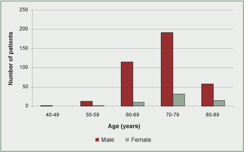 Age distribution was also as expected. The median age for men was 72 years and for women 73.