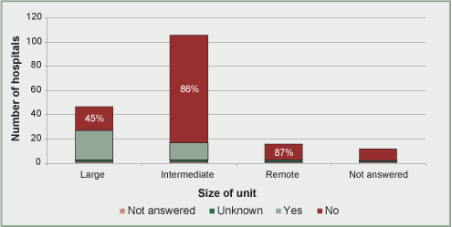 Overall, 24% (41/173) of hospitals reported that they had an on-call rota for interventional radiology. These rotas were chiefly found in large vascular units (Figure 8).